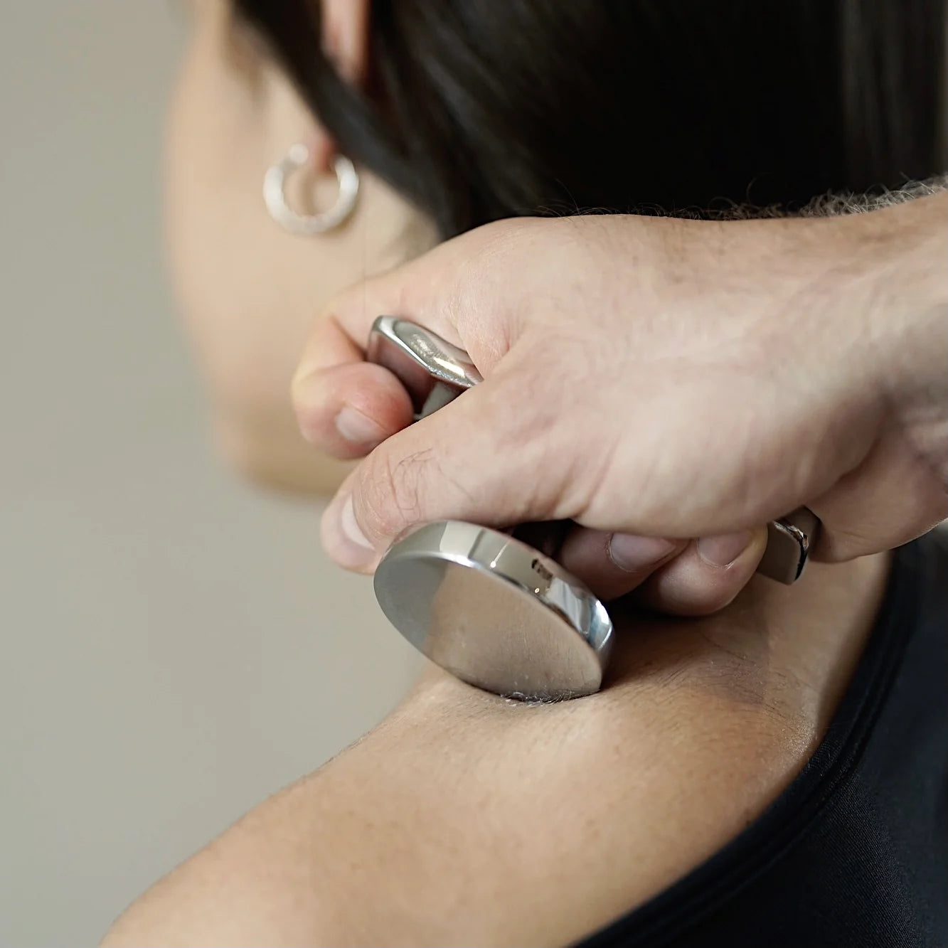 For those times when you want to perform soft tissue work without having to go directly on the skin, you can use Ttool over any soft clothing, or place a towel over your patient's clothing.